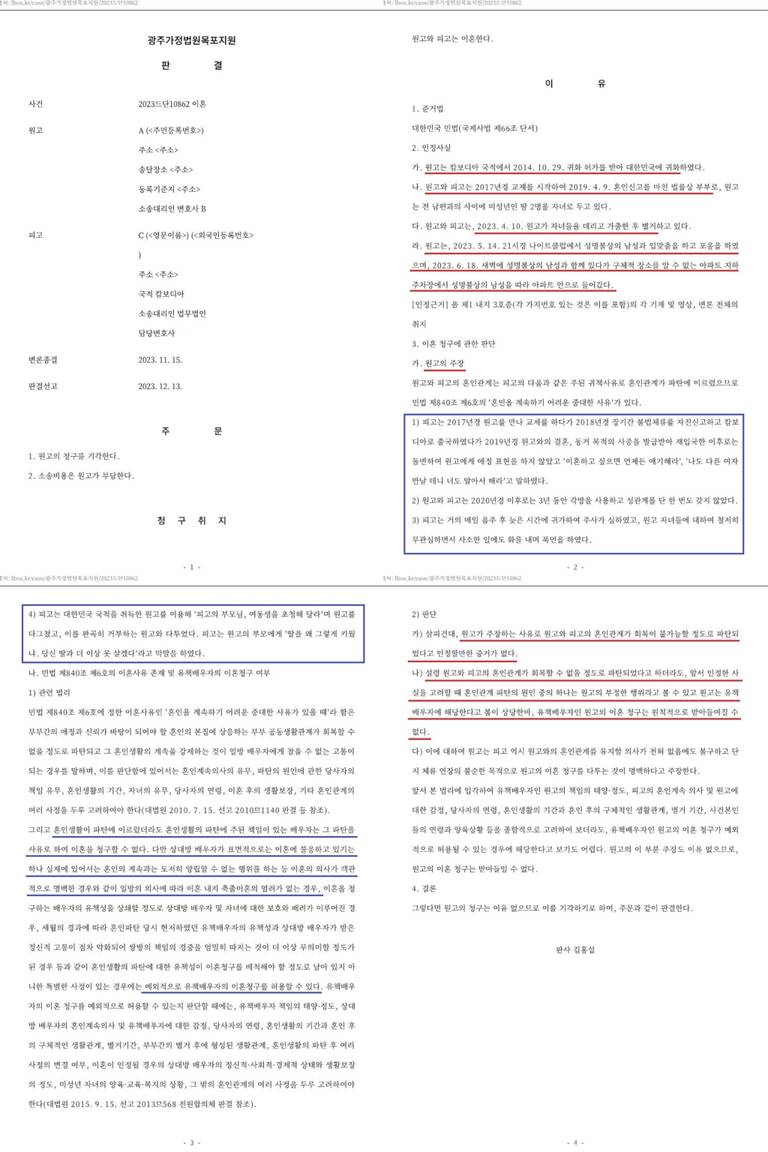 광주가정법원 목포지원 2023. 12. 13. 선고 2023드단10862 판결에서,