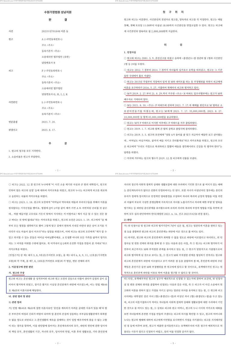 수원가정법원 성남지원 2023 8. 17. 선고 2023드단711848 판결에서,
