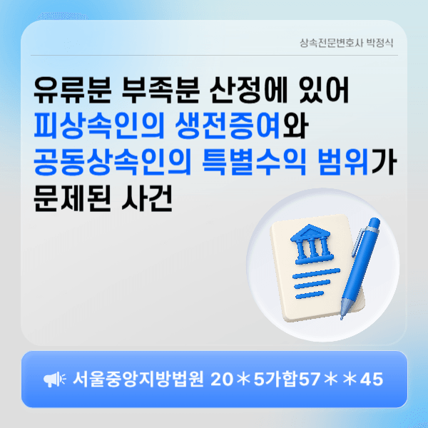 망인은 돌아가시기 전까지 대부분의 재산을 자녀들에게 증여해주었는데, 망인의 사후 자녀 중 1인이 자신이 생전 증여 받은 재산이 다른 자녀들에 비해 과소하다며 이 사건 유류분 반환청구를 제기하였습니다.
