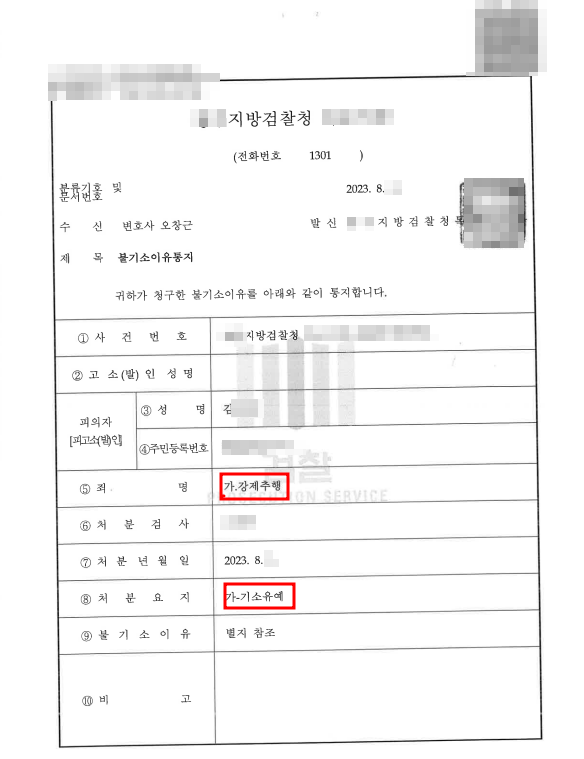 결국 피해자는 의뢰인의 사정을 듣고 합의 및 처벌불원의 의사를 표시하였고, 검찰 또한 의뢰인의 사정을 참작하여