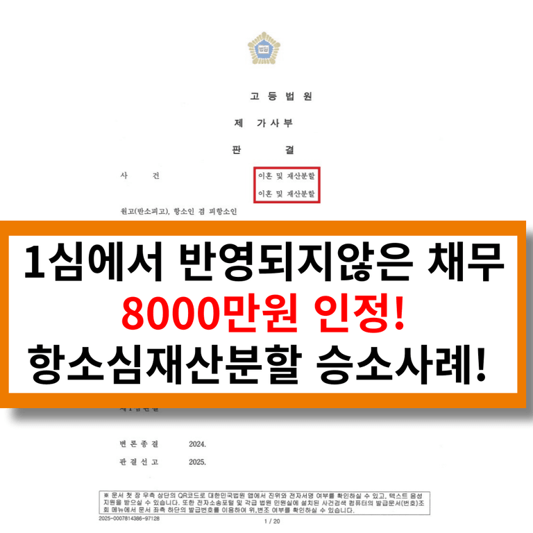 의뢰인분의 채무가 항소심에서 8,000만원 인정되면서