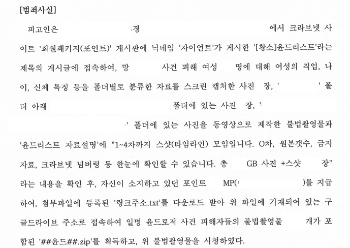 A씨는 크라브넷 사이트에서 포인트를 지급하고 윤XXX 파일을 구매한 혐의로 경찰조사를 받고, 기소유예를 목표로 수사단계에서 양형자료도 제출하며 최선을 다했습니다. 그러나 검사가 구공판 회부하여 재판을 앞두고 저희 법무법인 에스를 찾아주셨습니다.