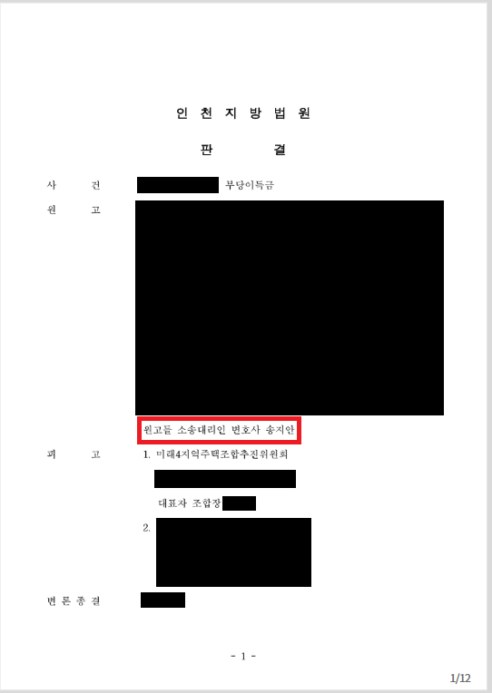 탈퇴부터 분담금 회수까지 일련의 과정이 성공적으로 진행된 케이스입니다. 인천 소재 지역주택조합과 관련된 문제가 있다면 법률사무소 송지에 편히 문의 부탁드립니다. 법률사무소 송지는 최근에도 지역주택조합 소유의 채권, 부동산 등에 대해 압류/추심/강제경매 절차를 진행하여 조합원 분담금을 실제 회수한 사례를 보유하고 있습니다. 감사합니다.