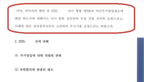 나아가 의뢰인 변호를 맡은 저 서범석변호사는 '주거침입' 혐의에 대해서도 다양한 판례와 해석을 분석한 끝에