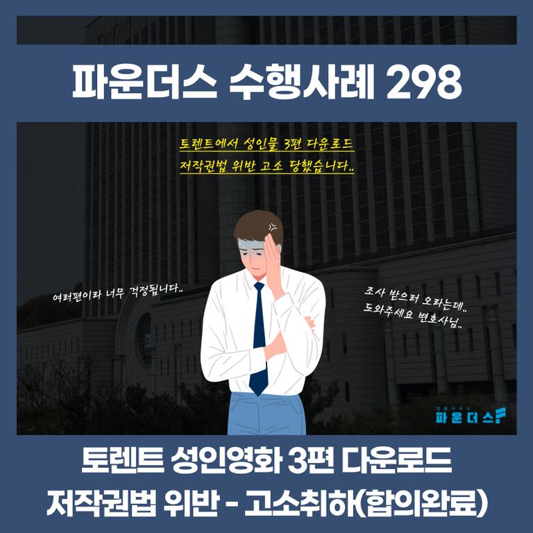 사건의 개요) 의뢰인은 토렌트 사이트에서 성인영화를 3편 다운받아 제작사로부터 저작권법 위반으로 고소를 당해 변호인의 조력을 요청하였습니다.