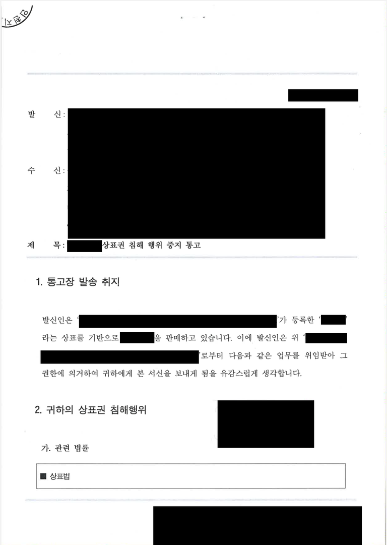 ![[내용증명] 상표권침해 경고장 발송한 사례](/_next/image?url=https%3A%2F%2Fd2ai3ajp99ywjy.cloudfront.net%2Fuploads%2Ftitleimage%2Foriginal%2F5f103f6632ce3e02d8e86bb4-original.jpg&w=3840&q=75)