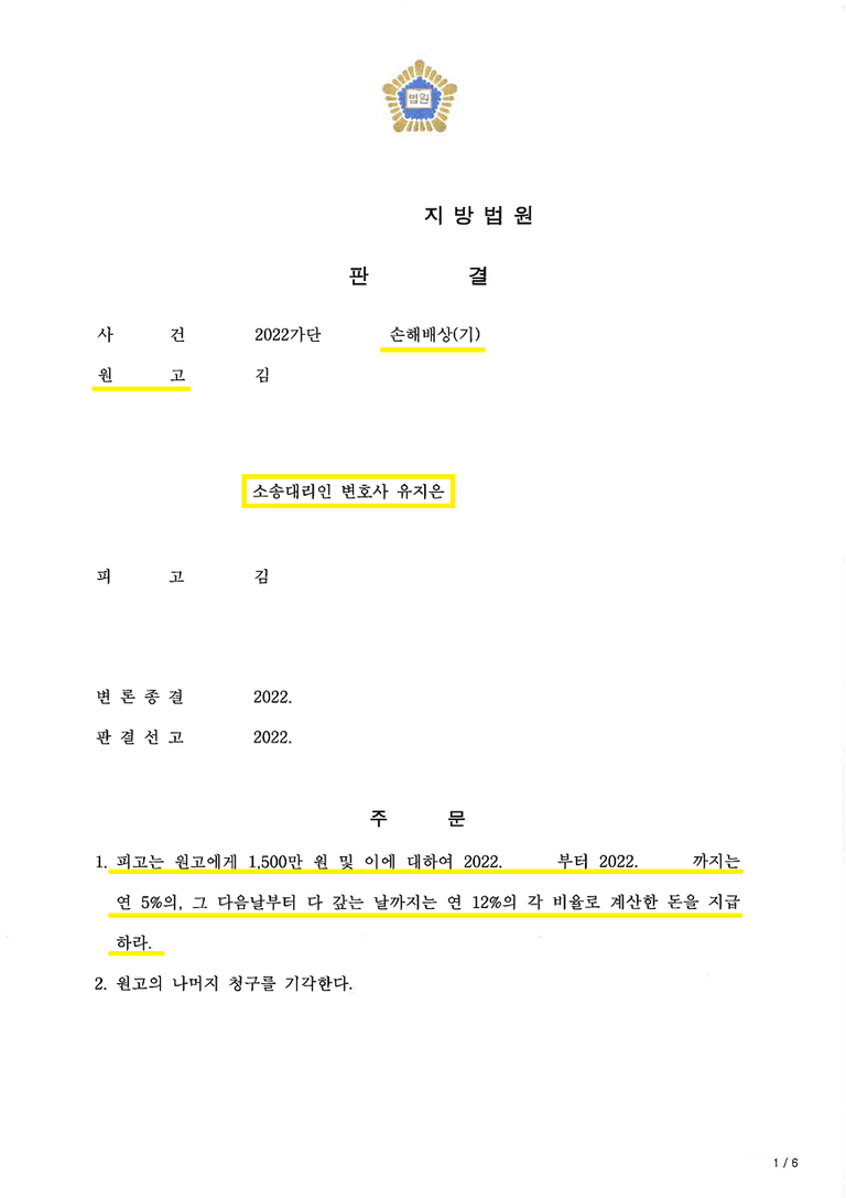 이에 저희는 둘이 알게된 동호회 지인들의 사실확인서를 통해 상대방은 망인이 유부남이라는 사실을 알고 있었고, 망인이 병원에 갈 때마다 아내의 존재를 언급한 사실을 근거로 여전히 혼인관계가 유지되고 있음을 알면서도 만났다는 것을 입증하였고, 상대방으로부터 1,500만 원의 위자료를 인정받을 수 있었습니다.