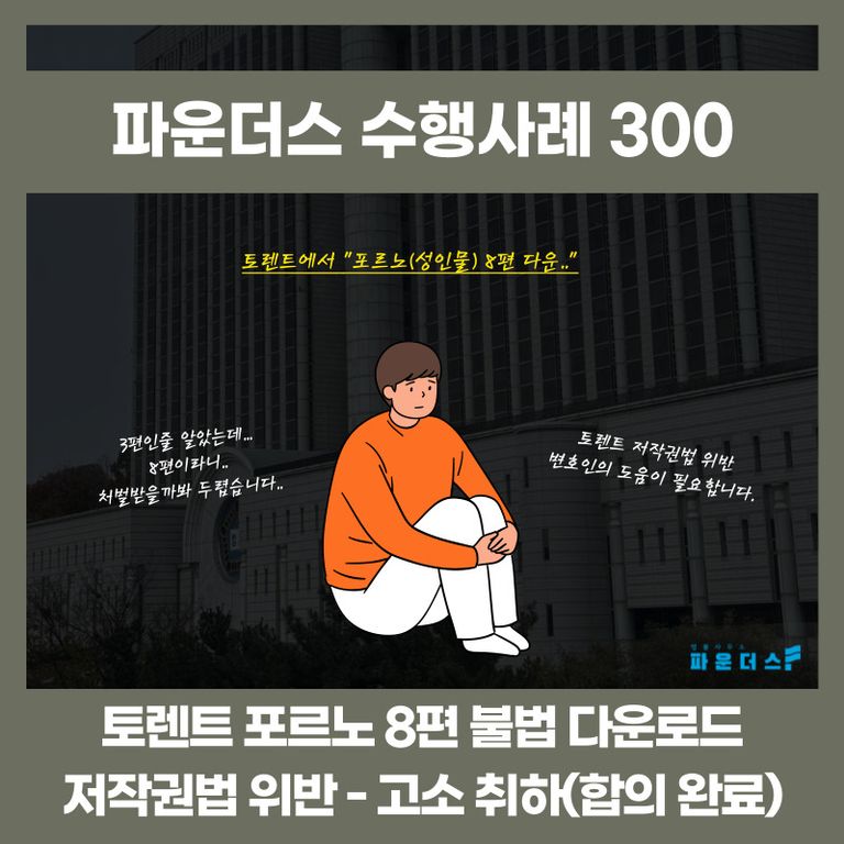 사건의 개요) 의뢰인은 토렌트 사이트에서 일본 포르노 영상을 8편 다운 받아 저작권법 위반으로 고소를 당해 변호인의 조력을 요청하였습니다.