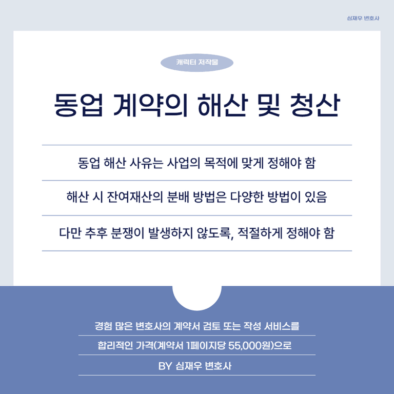 하지만 동업의 경우에는 주식회사에 비해 비교적 자유롭게 청산이 가능합니다.