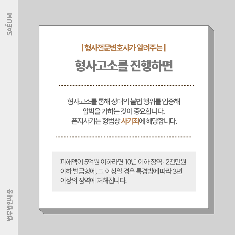 피해자 입장에서는 적정 선에서 합의를 통해 피해금액을 회수하는 것도 방법입니다. 충분한 회복을 위해서는 우선 범죄 사실을 입증할 충분한 증거 확보가 필수적입니다.