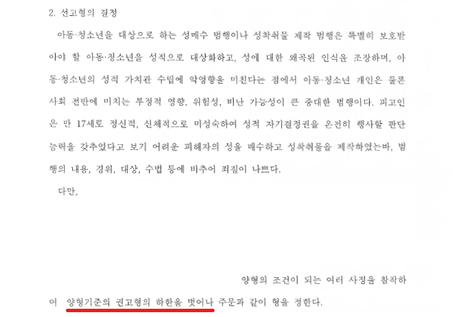 이러한 저의 조력을 바탕으로 A씨는 아청성매수죄와 성착취물제작죄라는 두 개의 중범죄를 저질러 구속 가능성이 매우 높았음에도 불구하고 양형기준 하한을 이탈한 집행유예를 선고받음으로써 구속 위기에서 벗어날 수 있었습니다.