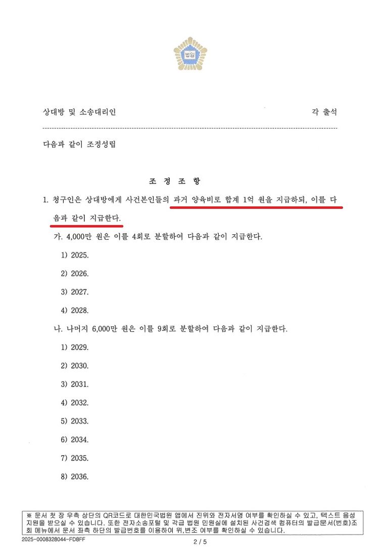 아래 조정조서 공유드립니다.