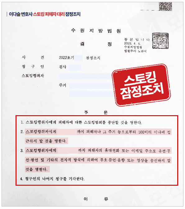 - 실제 이다슬 변호사 피해자 대리 잠정조치 결정 성공사례 -