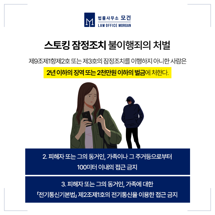 스토킹처벌법엥서는 스토킹 잠정조치 위반 처벌 조항도 별개로 두고 있습니다. 다시말해, 잠정조치 자체를 어긴 것만으로도 형사처벌 대상이 된다는 점을 유념하셔야 합니다.