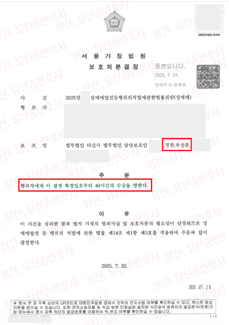 서울가정법원은 다음과 같은 보호처분을 결정하였습니다.