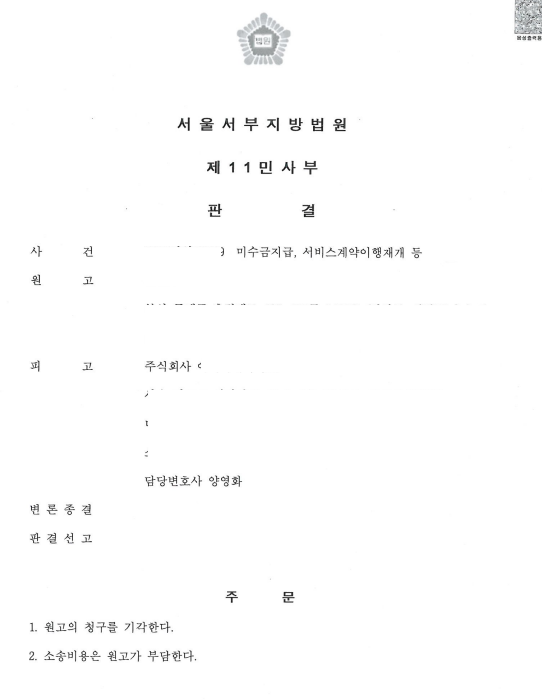 이에 원고는 피고에 대하여, 수수료 지급을 청구하고 서비스를 재개하라는 내용의 민사소송을 제기하였습니다.
