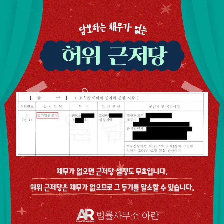 근저당권은 본래 채무를 담보하기 위하여 설정하는 것입니다. 그러나 제3자의 강제집행을 회피하기 위한 목적 등으로 허위의 근저당권을 설정하는 경우가 종종 있습니다.