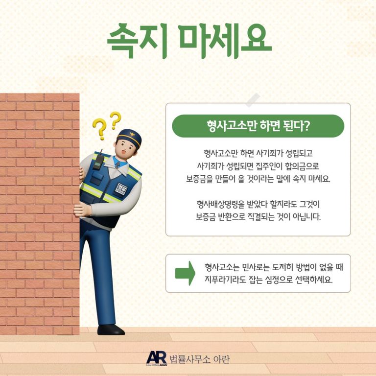 형사고소를 하면 보증금을 반환받을 수 있다는 말에 속지 마세요.
