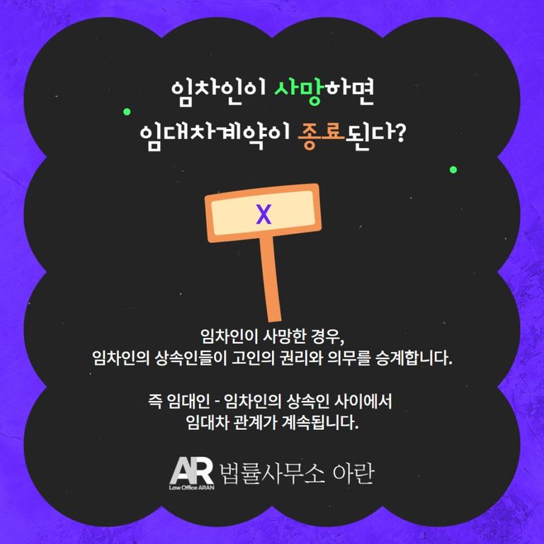 임차인이 사망한 경우, 임차인의 상속인들이 고인의 권리와 의무를 승계합니다.