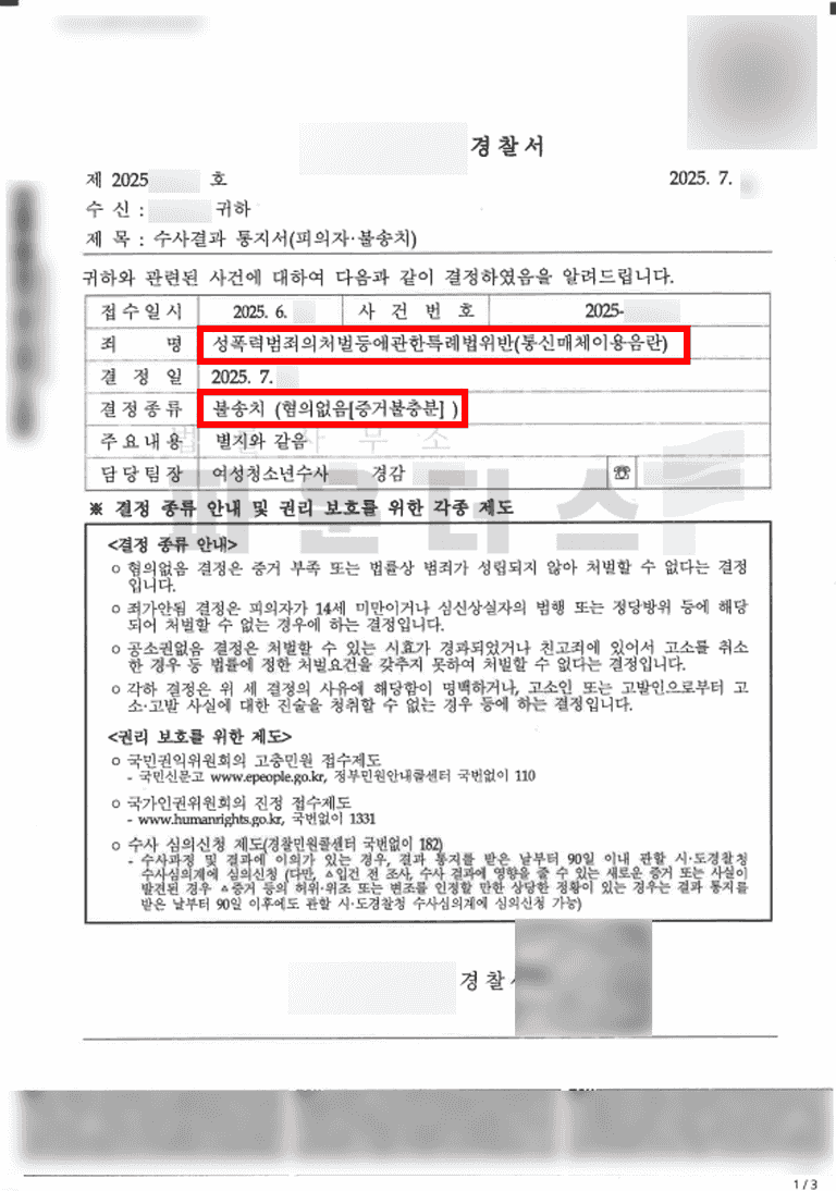 그 결과 의뢰인은 리그오브레전드 게임을 하던 중 패드립을 한 통매음 사건에 있어 불송치 결정으로 경찰단계에서 사건을 마무리 지을 수 있었습니다.