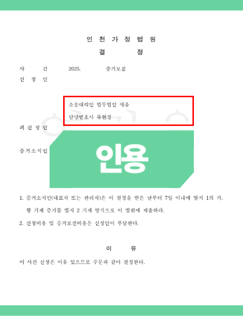 또한 CCTV 증거보전을 하는 경우 전달해주는 업체에서 번거로움을 느끼는 부분이 있어 보전이 느려질 수 있었는데요. 이에 결정이 난 후 협조를 부탁하였고, 무사히 증거보전 신청이 받아들여져 증거를 확보할 수 있었습니다.