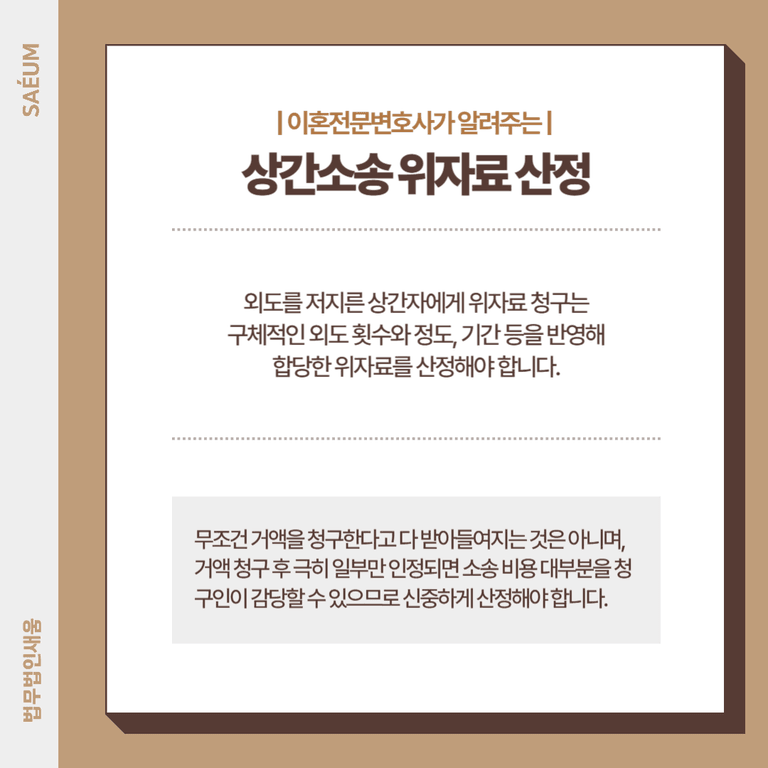 상간소송, 위자료 산정에 유의해야 합니다.