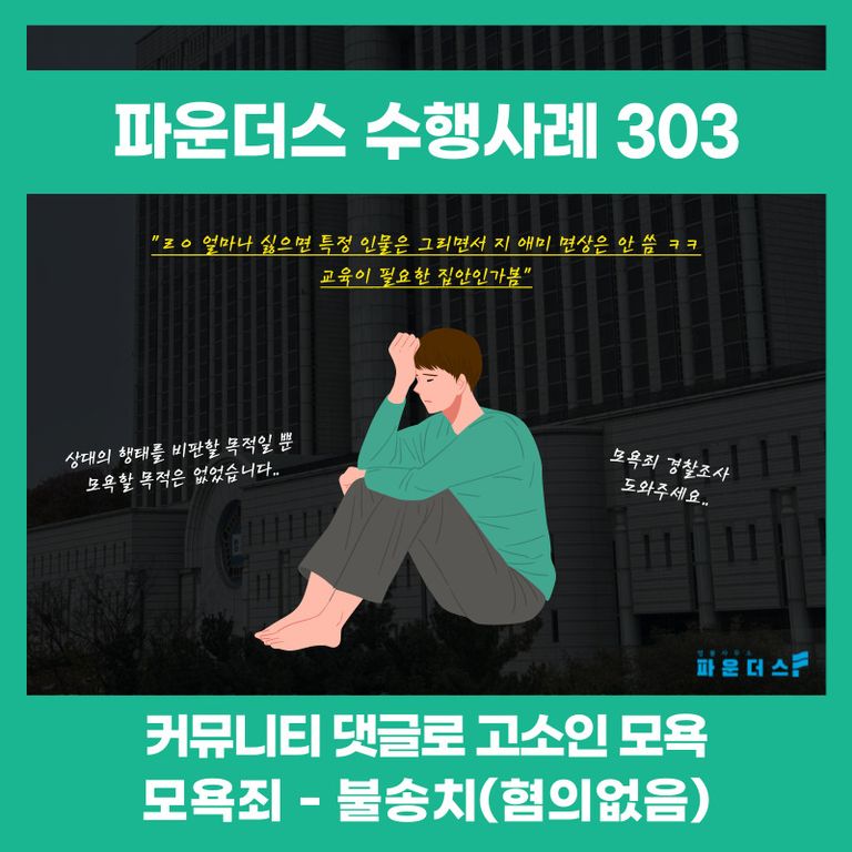 사건의 쟁점) 본 사건은 온라인 커뮤니티 댓글 작성으로 공연성이 인정되는 상황이기에 경찰조사를 통해 특정성과 묘욕 행위에 성립하지 않은 점을 논리적으로 주장해 나가는 것이 중요했습니다.