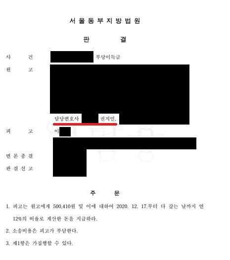 법원은 권지민 변호사의 주장을 모두 받아들여,
