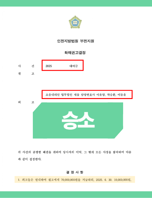 또한 언니를 대신해 모친의 생활비를 지급하기로 합의하여, 부양료 명목으로 매달 50만 원을 지급받기로 하였습니다. 그러나 A씨는 언니와 조카로부터 어떠한 금원도 돌려받지 못했고, 결국 대여금 반환을 위해 법무법인 새움을 찾아오셨습니다.