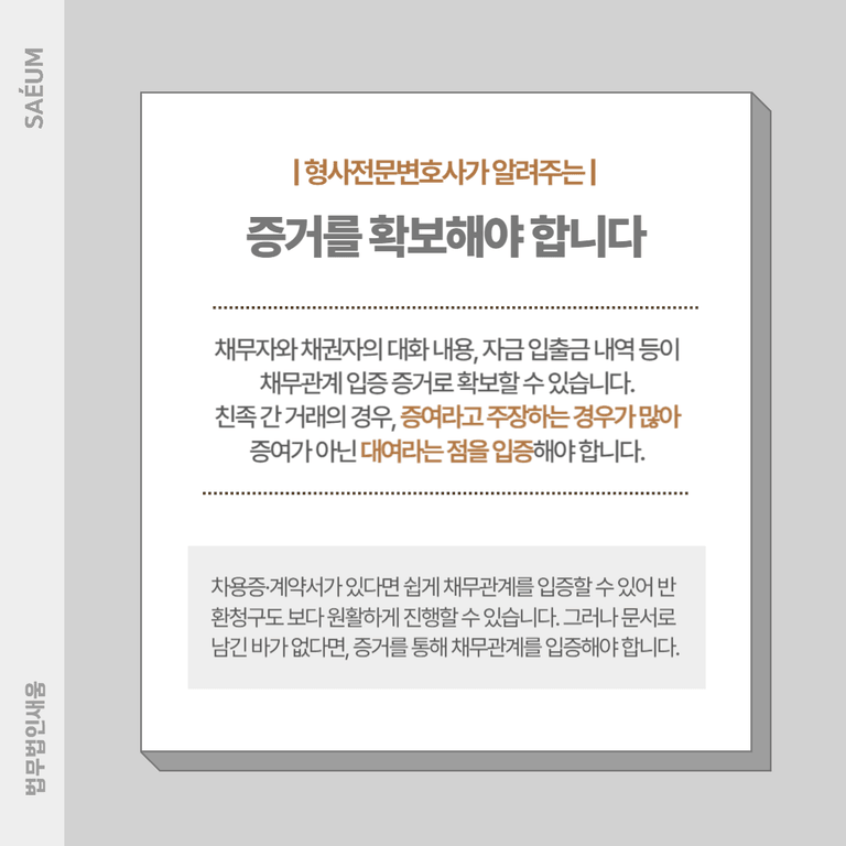 채무관계를 입증할 수 있는 증거를 확보해야 합니다