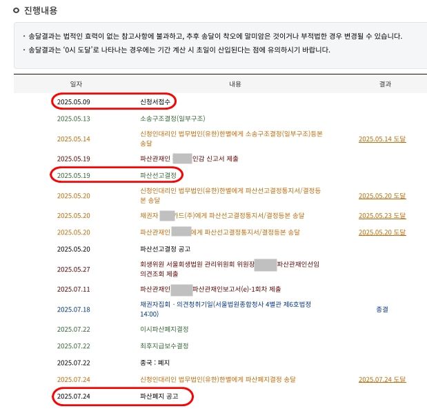 법원 신청후 1주일만에 파산선고가 되어 사건이 빠르게 진행되었습니다.