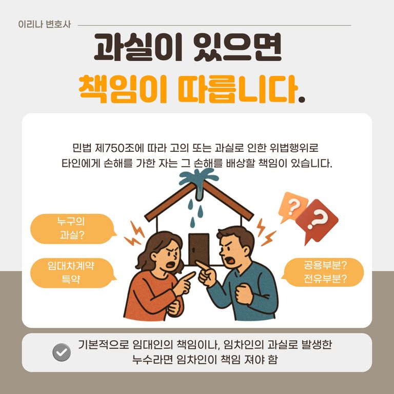 오늘은 ‘누수’가 발생했을 때 누가, 어디까지 책임져야 하는지 법적인 기준을 바탕으로 알려드리겠습니다.