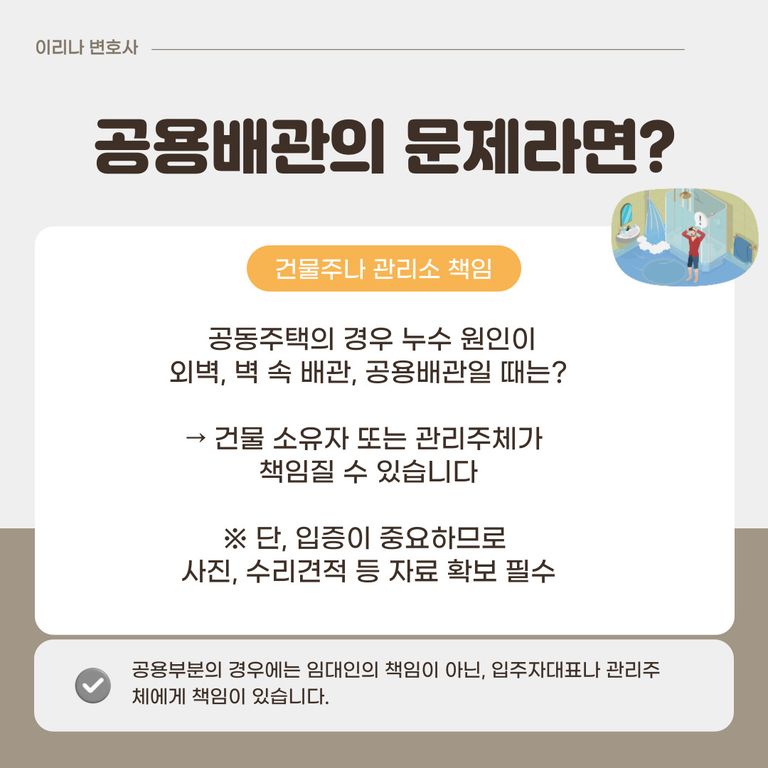 → 관리주체 또는 건물주가 책임을 져야 할 수도 있습니다.