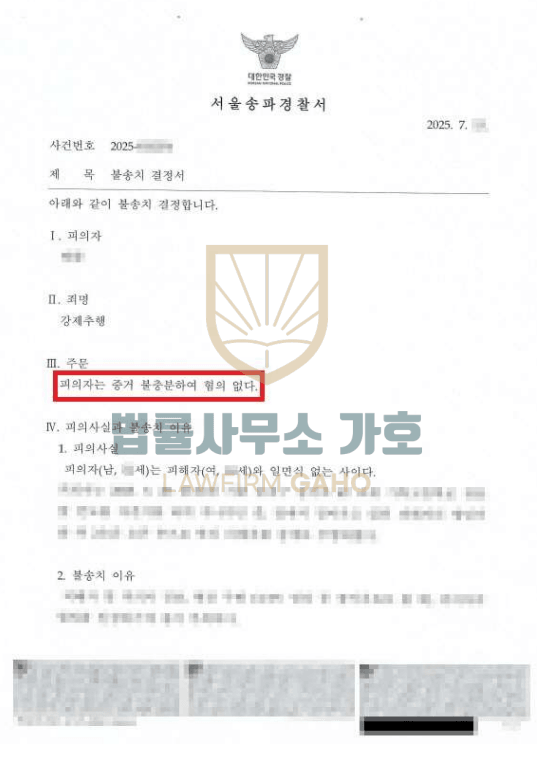 미성년자 대상 성범죄에서 검찰단계로 가기도 전에 경찰단계에서 불송치결정을 하는 경우가 극도로 적음에도 불구하고 조기에 경찰 불송치결정을 받아 의뢰인의 무혐의를 조기에 성공적으로 입증한 사건이었습니다.