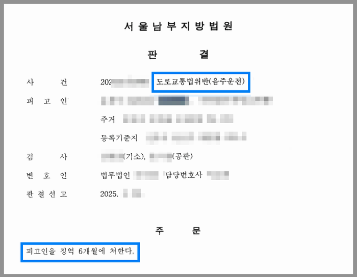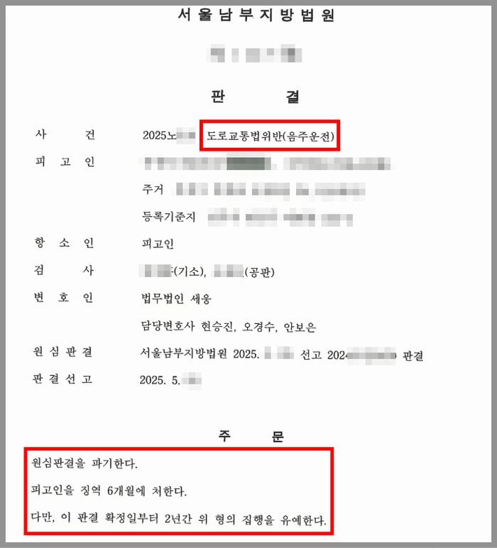 비록 의뢰인의 과거 전력들은 이 사건과 제법 시간적 간격이 있었지만, 제1심 재판부는 의뢰인이 음주 단속 과정에서 도주를 시도한 점, 장거리 운전을 하려다가 적발된 점 등의 불리한 정상을 바탕으로 의뢰인에게 징역 6월의 실형을 선고하고 법정구속하였습니다.