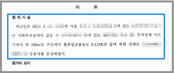 의뢰인은 과거 음주운전으로 3회, 무면허운전으로 1회 처벌받은 전력이 있었는데, 또다시 혈중알코올농도 0.112%의 술에 취한 상태로 운전을 하다가 적발되었습니다.