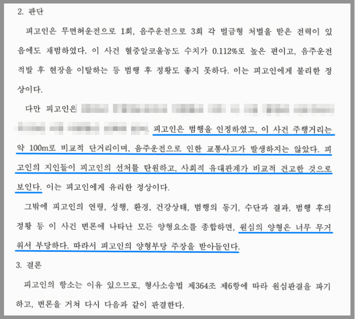 또한 원심의 판단에 수긍이 가는 면이 없지는 않지만, 변호인이 10년 이상 교통범죄 사건의 변호를 수행하면서 맞닥뜨린 수많은 사건들과 비교하였을 때 양형이 과중하다는 점을 객관적인 자료를 통해 주장·입증하였습니다.