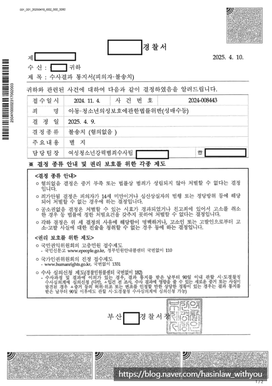 결국 최종적으로 불송치결정을 받을 수 있었습니다.