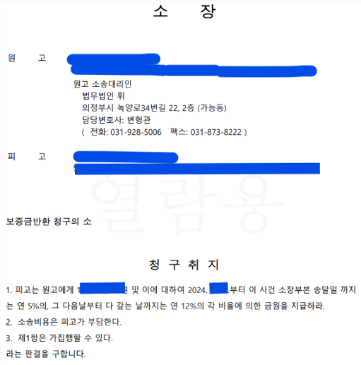 오늘은 임대차 계약 종료 이후에 보증금을 반환받지 못하여 고심에 빠져 있던 의뢰인을 대리하여, 보증금 반환을 모두 이루어낸 사안을 소개해드리고자 합니다.