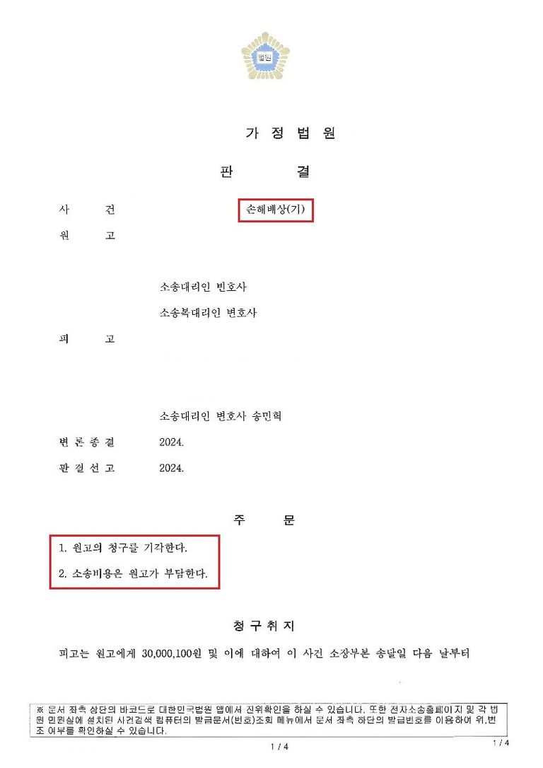 원고의 3천만 원 청구를 전부 기각하고,