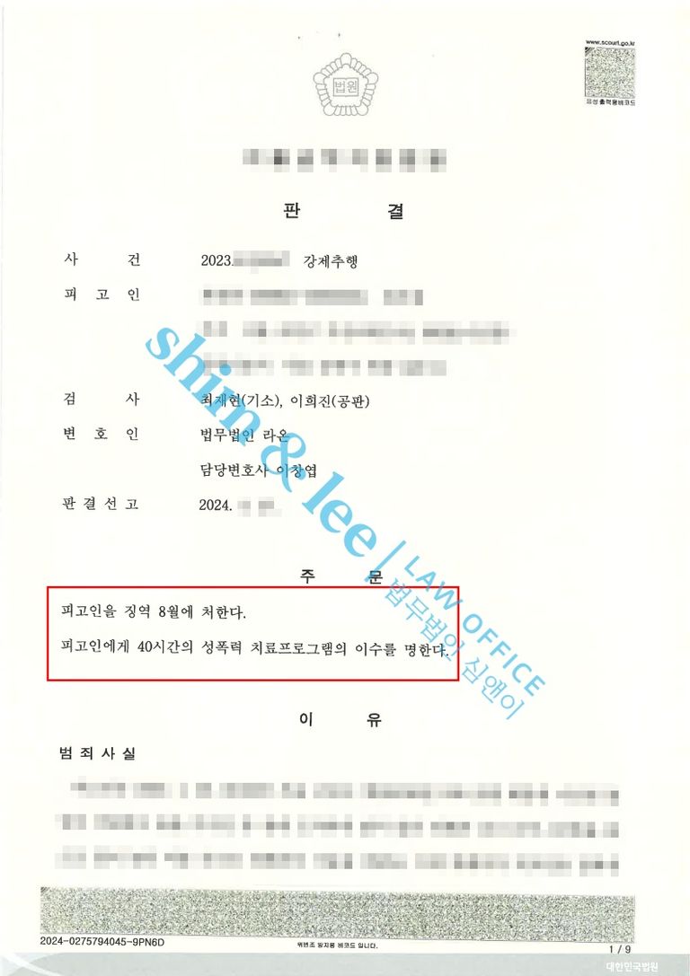 1. 1심 선고 결과 -> 징역 8월, 성폭력 치료강의 40시간