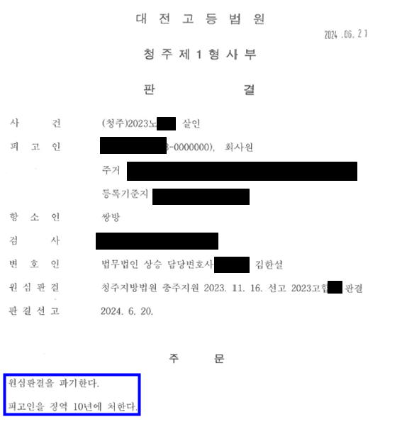 의뢰인은 술에 만취하여 친한 형(피해자)을 밀치고 수회 때렸고, 피해자는 머리 부위 출혈, 얼굴 뼈대 골절, 치아 탈구, 목척추 손상, 다발성 손상 등으로 사망하였습니다. 의뢰인은 피해자를 때렸다는 사실 조차 기억하지 못 했고, 그가 사망하였다는 사실을 듣고 도저히 믿을 수 없다는 반응을 보였습니다. 의뢰인은 1심에서 징역 13년을 선고받았습니다.