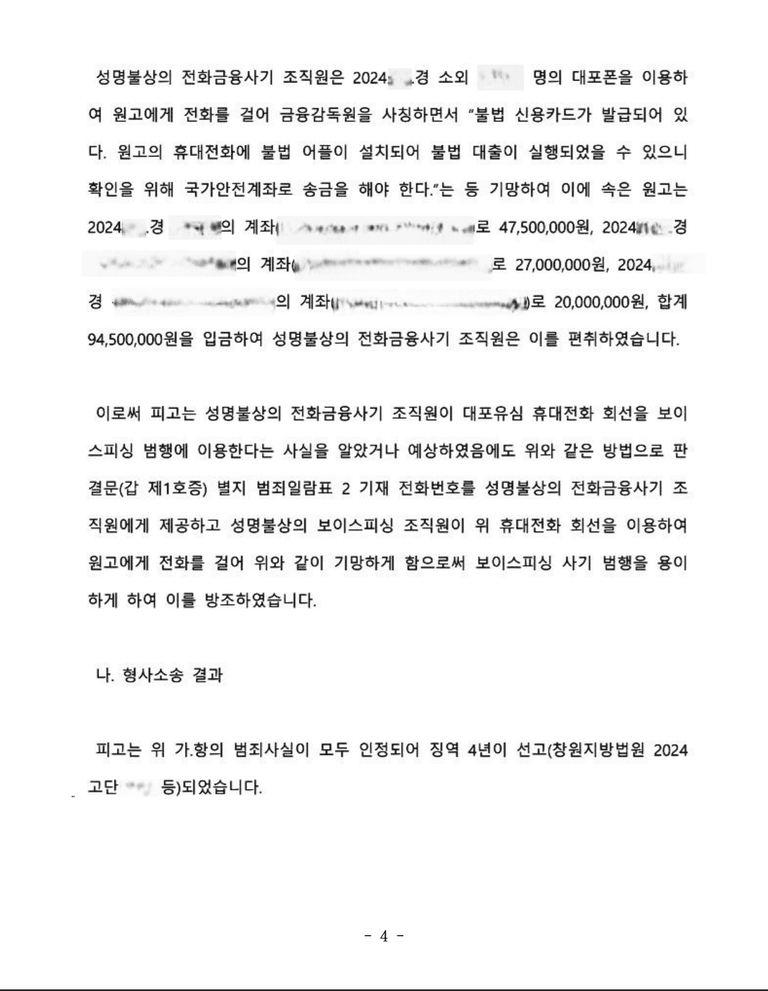 의뢰인은 보이스피싱을 당하여 거액을 송금하였고 이후 보이스피싱임을 인지하고 경찰에 신고하였고 공범들 중 일부가 검거되자 저에게 찾아오셨습니다.