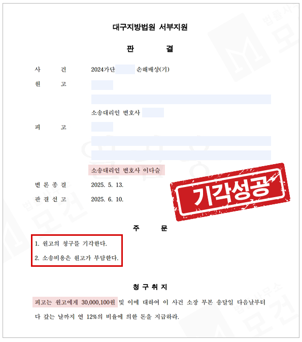 이에 법원은 원고의 청구를 기각하는 패소 판결을 내려주었습니다.