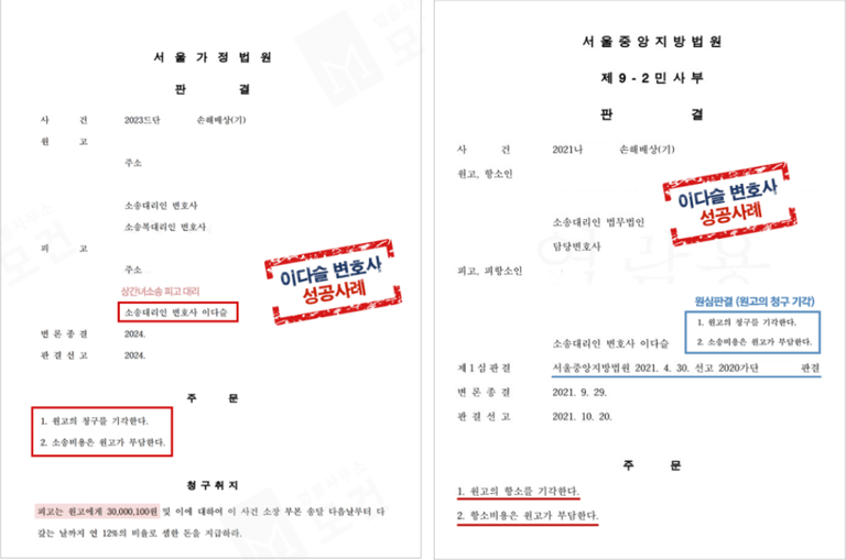 - 이다슬 변호사의 피고 대리 성공사례들 -