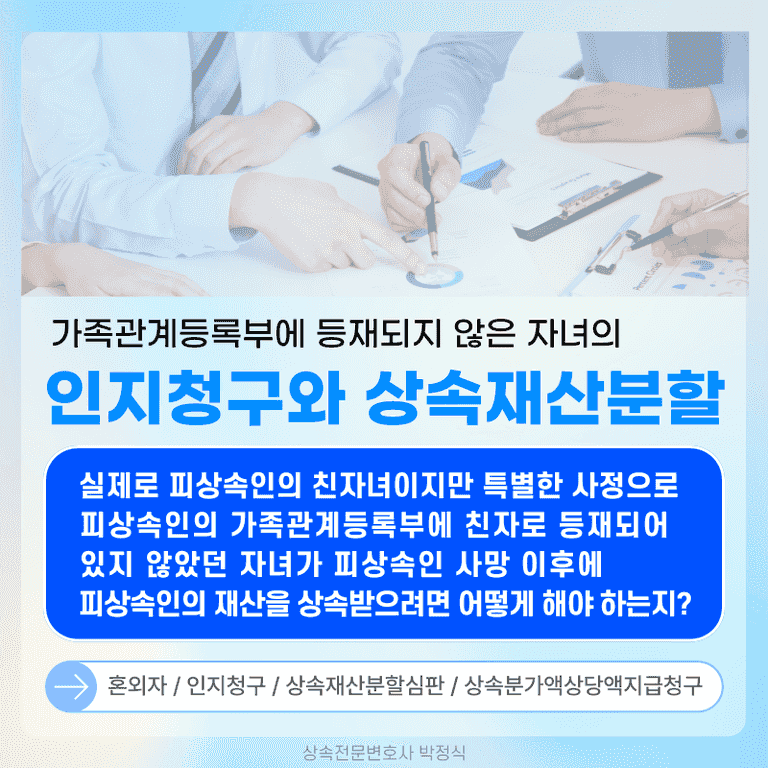 ![[상속전문변호사] 가족관계등록부에 등재되지 않은 자녀의 상속문제(인지청구, 친생자관계존재확인청구)](/_next/image?url=https%3A%2F%2Fd2ai3ajp99ywjy.cloudfront.net%2Fuploads%2Ftitleimage%2Foriginal%2F5f102b49a0f88f02eea6141b-original.jpg&w=3840&q=75)