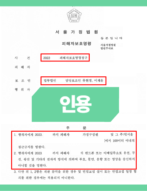 법무법인 새움은 재범의 위험성과 폭행의 중대성을 강조해 신청했고, 그 결과 2주 이내에 피해자 보호 명령이 내려졌으며, 최장 1년 동안의 보호명령도 함께 확보할 수 있었습니다.