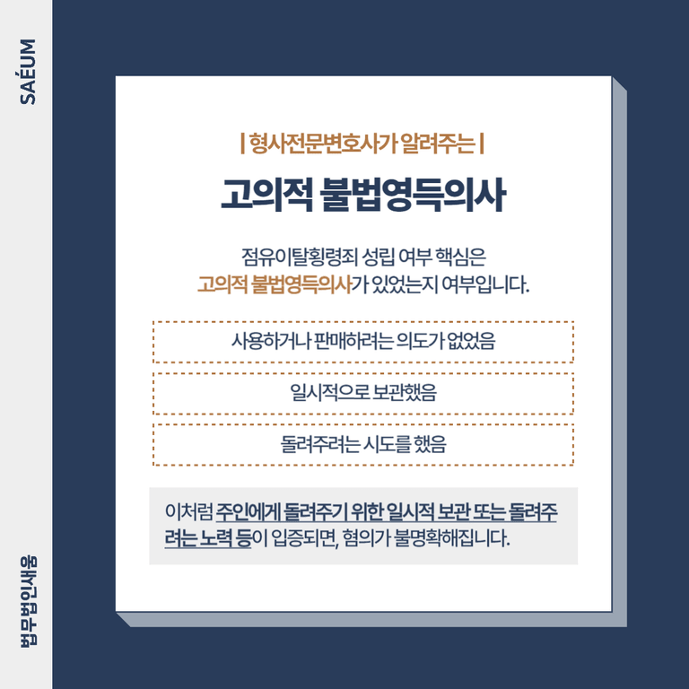 돌려주려는 시도를 했음 등이 입증되면, 혐의가 불명확해집니다.