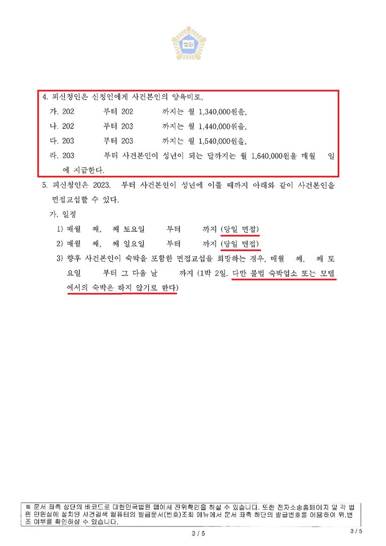 ③면접교섭도 통상적인 숙박이 아닌 당일 면접교섭만 진행할 수 있도록 기재하였습니다.
