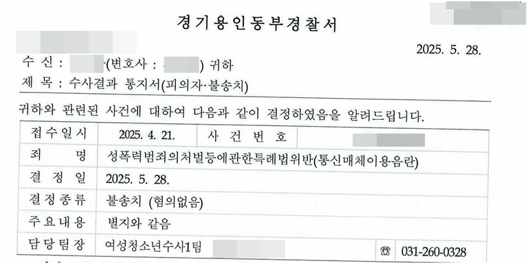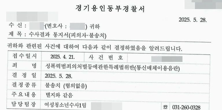 경찰 불송치 (혐의없음) 결정